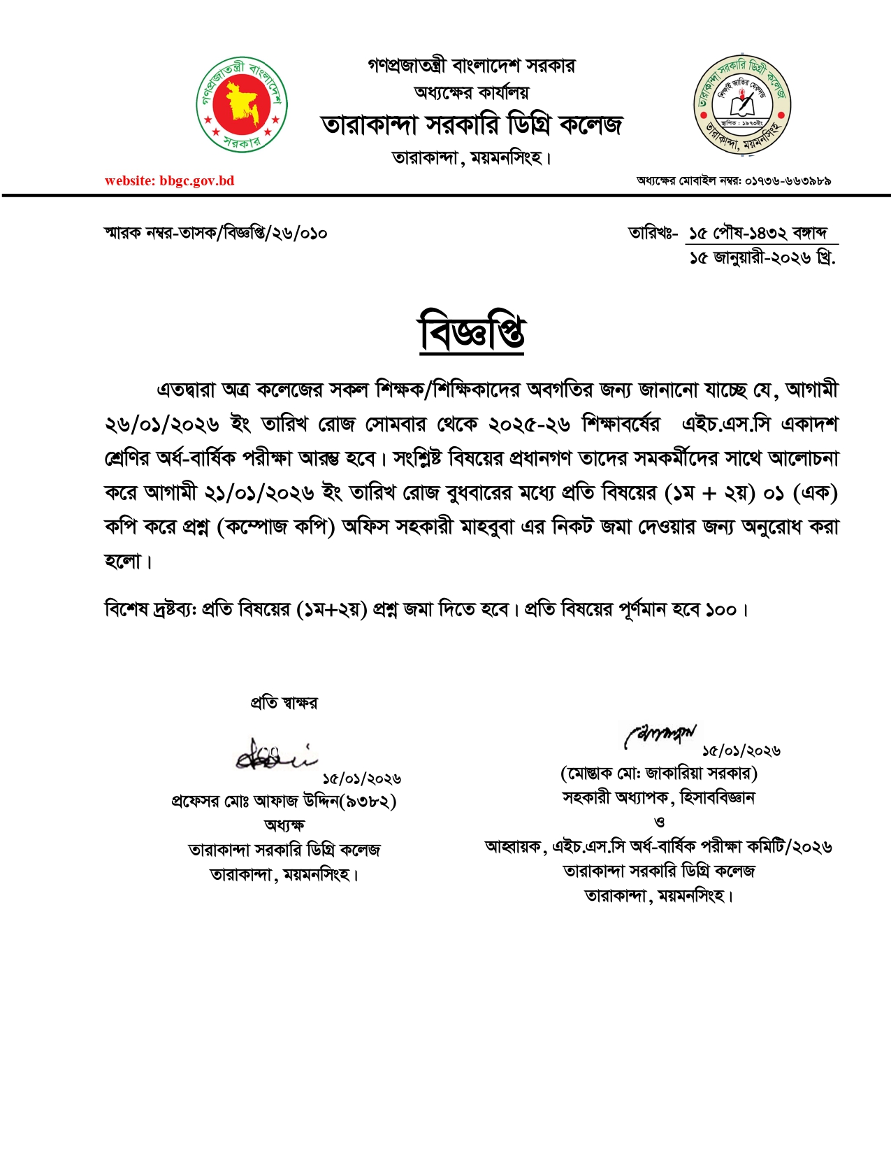 কলেজ নোটিশ।